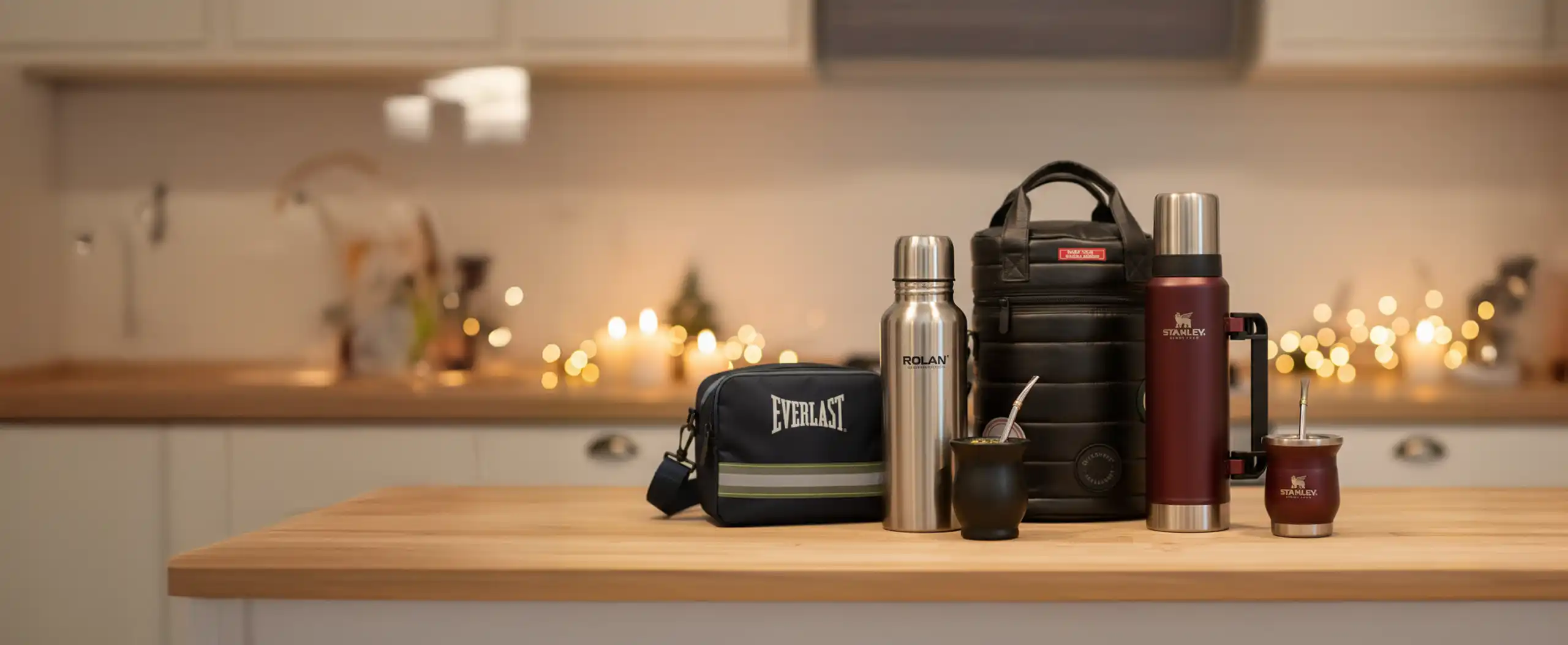 Termos, mates y mochilas listas para acompañar cada celebración.