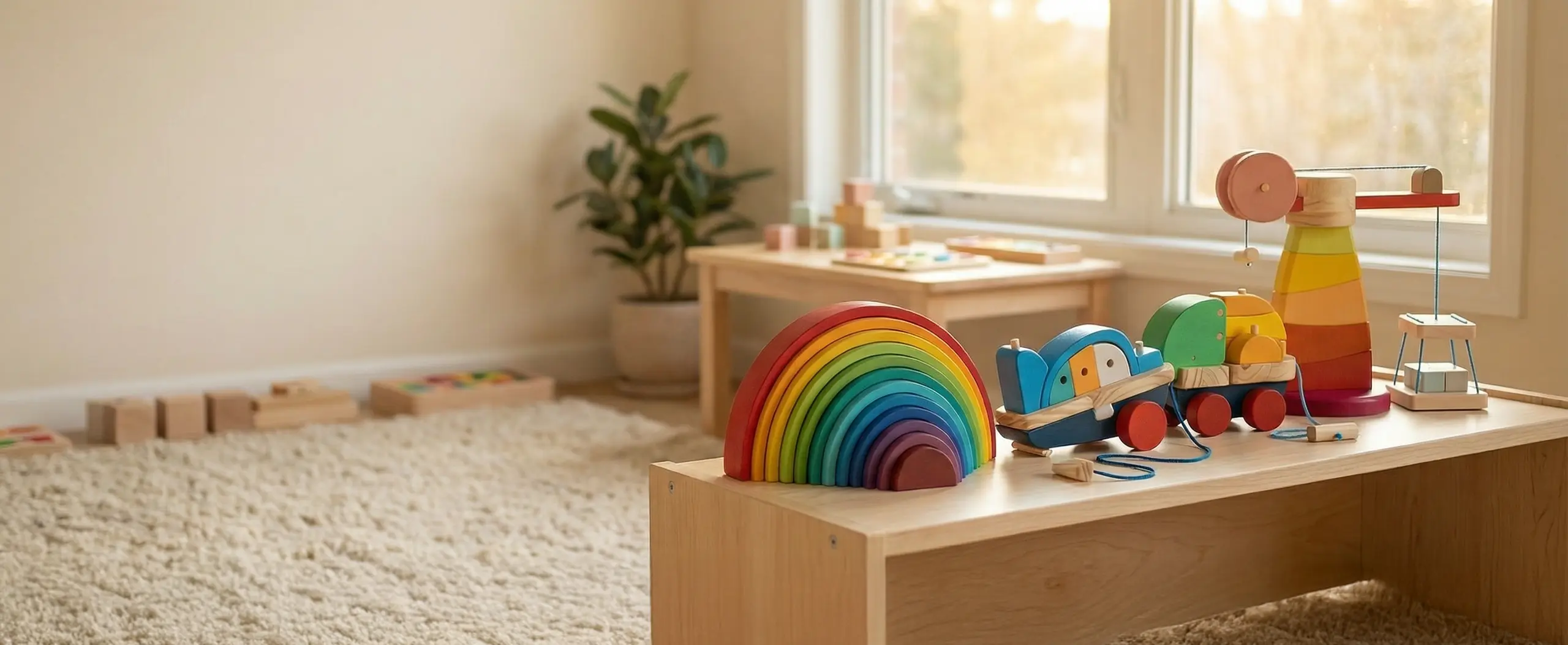 Juguetes de madera diseñados para estimular la creatividad y el desarrollo infantil.