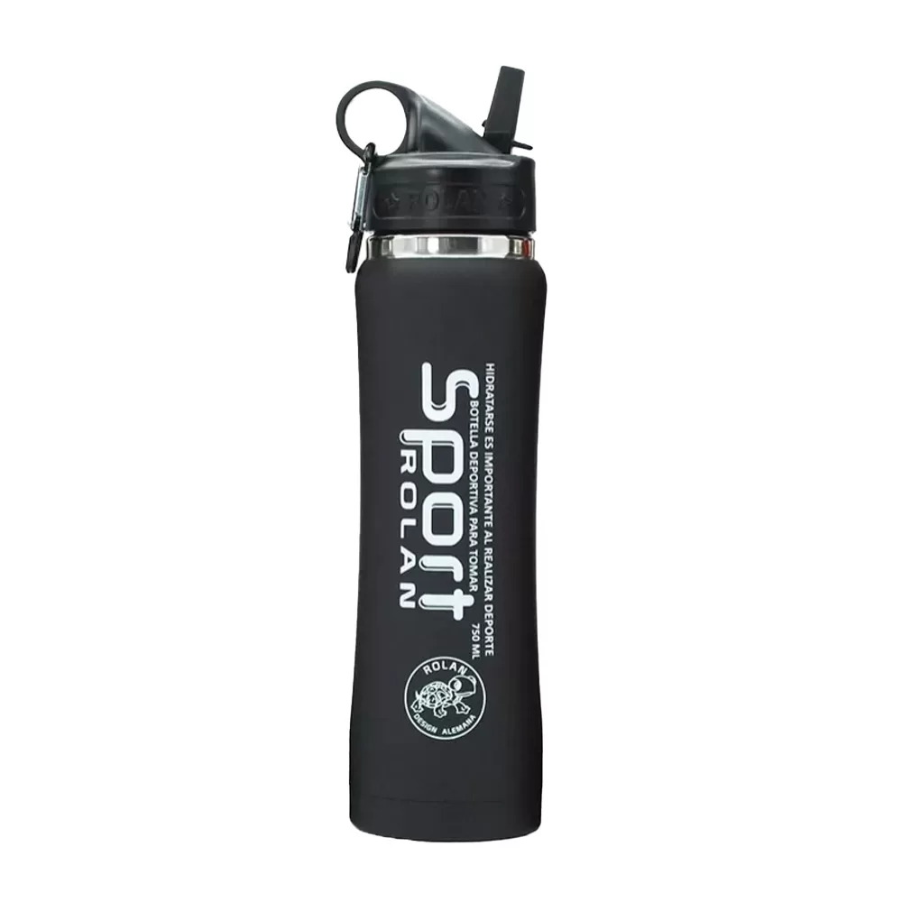 Botella Deportiva Rolan Térmica Acero Inoxidable Engomado 750ml COLOR NEGRO