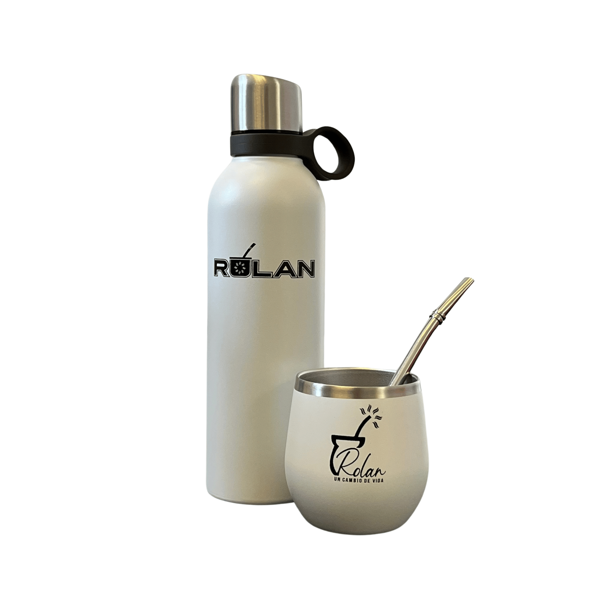 Combo Termo + Mate + Bombilla ROLAN de Acero 600ml blanco