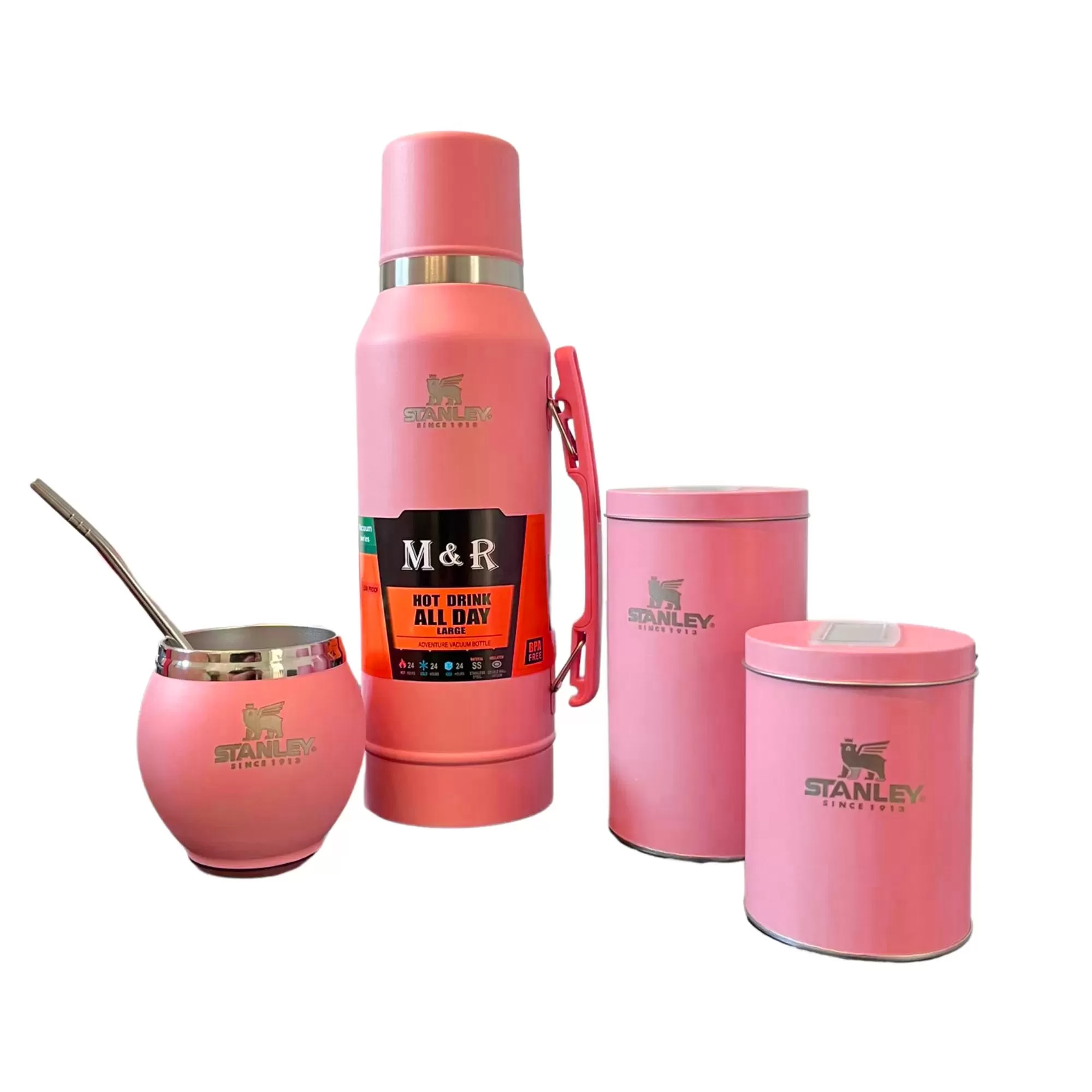 Combo Premium Mate + Termo 1L + Bombilla + Accerorios Simil Stanley ROSA CHICLE