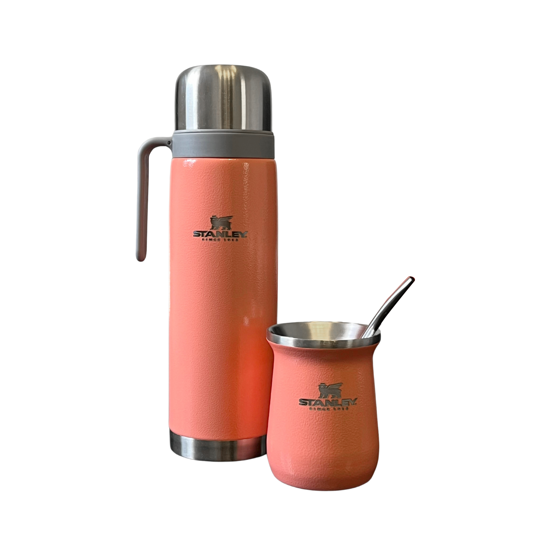 Combo Termo 1 Litro + Mate + Bombilla Simil Stanley Salmon(LIQUIDACIÓN)
