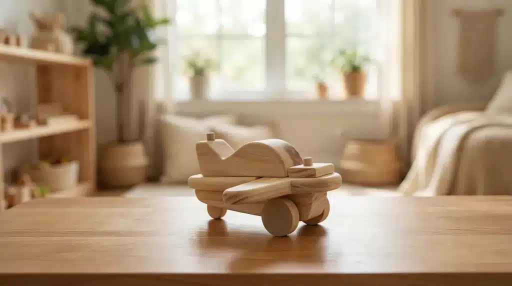 Mini avión jumbo de madera Manick, un juguete simple y creativo que estimula la imaginación y el juego libre. Ideal para niños a partir de los 3 años.