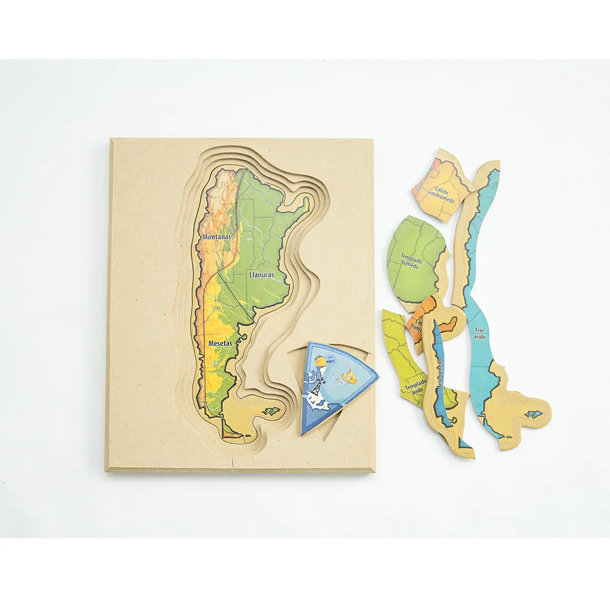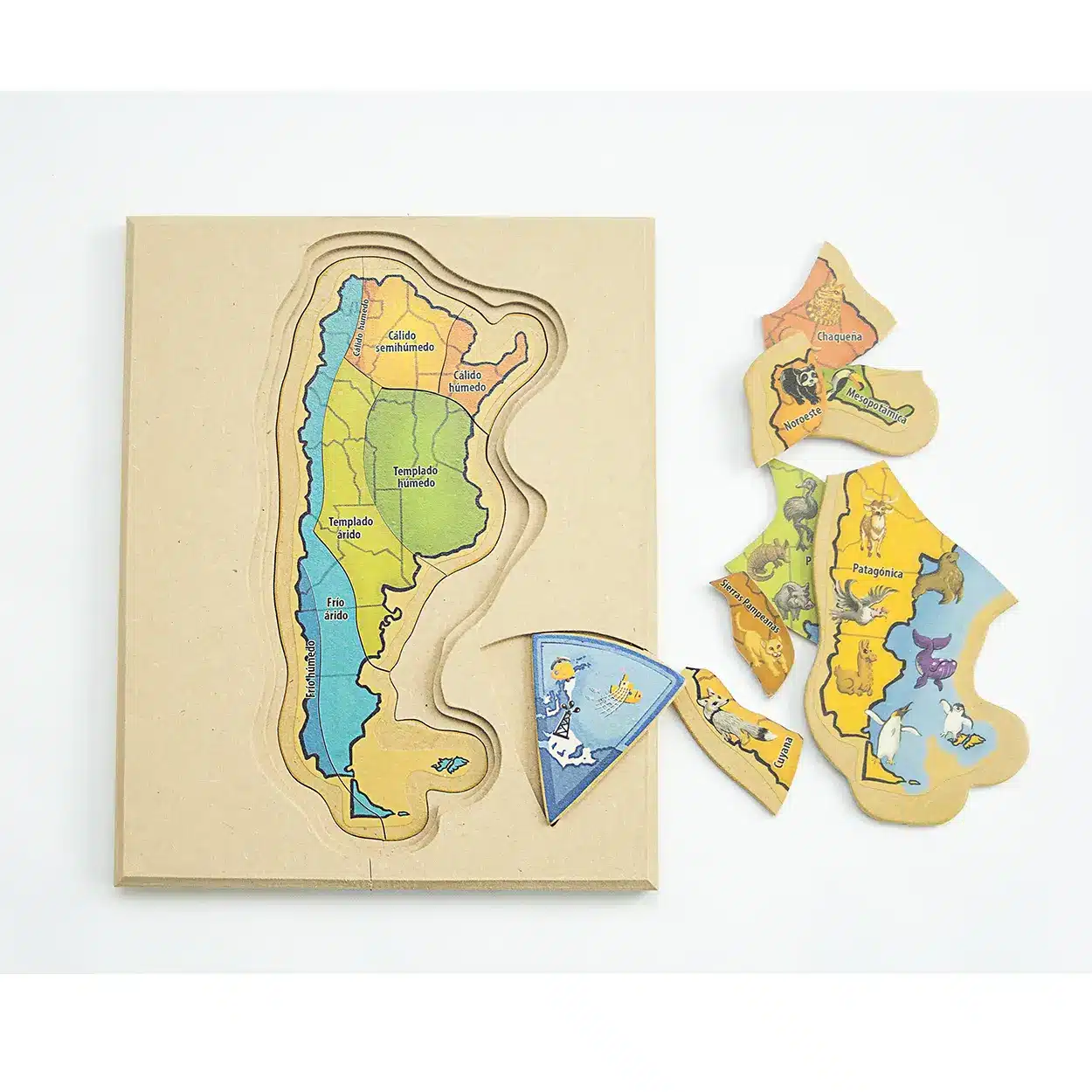 Su diseño con temática de Argentina permite introducir conceptos básicos de reconocimiento y ubicación, fomentando el interés por el entorno y el aprendizaje consciente.