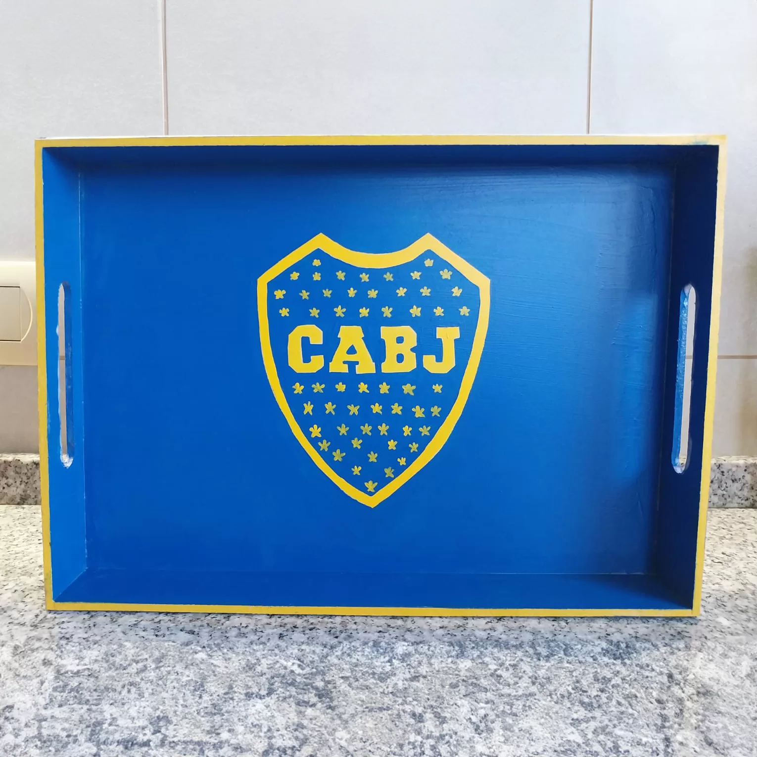 Demostrá tu pasión por el fútbol también en tu hogar. Estas bandejas de madera están pintadas a mano con los escudos oficiales de los clubes más populares de Argentina: River Plate, Boca Juniors, Racing Club e Independiente.