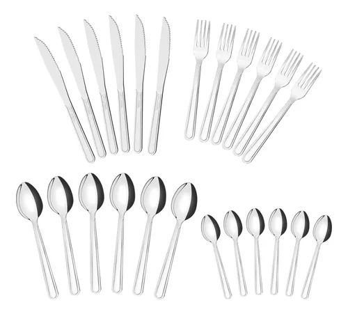 - Cubiertos incluidos: 06 Cuchillos, 06 Tenedores, 06 Cucharas y 06 Cucharas de Postre